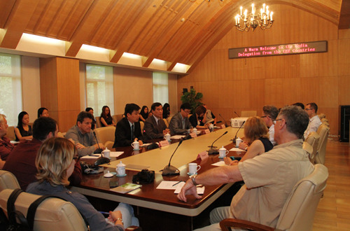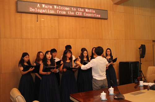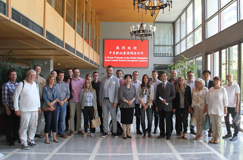随后,记者团访问了外语教学与研究出版社。外研社副总编章思英、综合语种分社社长彭冬林以及外研社国际部主任侯慧分别向记者团介绍了外研社发展的历史、现状以及今后的发展规划,特别介绍了近年来外研社与中东欧国家在出版合作方面所取得的成绩。记者团对外研社取得的成就表示赞叹,并表示希望推进各自国家出版业与外研社的合作关系。