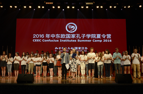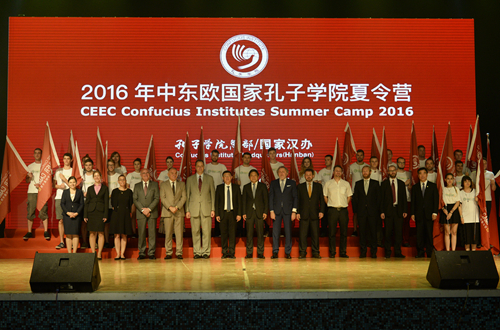 7 月19日下午,“2016年中东欧国家孔子学院夏令营”开营仪式在我校举行。此次夏令营是“中国-中东欧国家人文交流年”的活动之一,由外交部委托国家汉 办/孔子学院总部主办,海外27所高校和国内21所高校承办,共邀请16个国家的596名大中小学生来华访问。国家汉办副主任马箭飞,我校校长彭龙、副校 长闫国华,以及11个中东欧国家的驻华使节、部分中方高校代表出席开营仪式。
