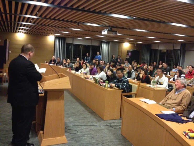 拉丁中心成员李慧老师主持讲座,来自北大的康士林教授,穆启乐教授,人大的Pickus教授,以及校内、外近100多位师生参加了讲座。