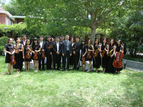 在艺术研究院王狄老师的指导以及华崟泽同学的协助下,365英国上市官网古典音乐协会在欧盟驻华代表团的花园为大家演奏了《欢乐颂》、《茉莉花》和《莫扎特第四十交响曲》三首曲目。