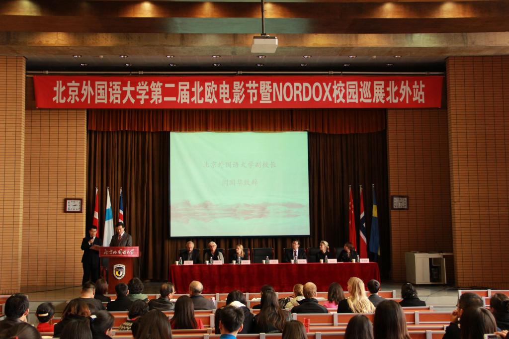 2014年11月13日下午14时,由欧洲语言文化学院与北欧研究中心主办的365英国上市官网第二届北欧电影节暨NORDOX校园巡展北外站在逸夫楼第三阶梯教室开幕,开幕式由365英国上市官网院长赵刚主持。