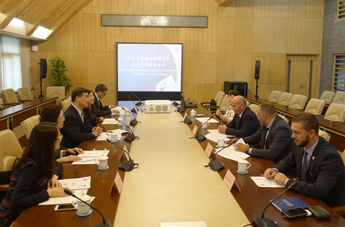 9月19日,阿尔巴尼亚地拉那大学孔子学院2018年理事会议在行政楼507会议室召开。阿方理事会成员、地拉那大学校长米纽尔•科尼(Mynyr Koni)、自然科学系教授普兰维娜•拉佐(Pranvera Lazo)、国际合作与交流处处长埃尔顿•斯堪得(Elton Skendaj),中方理事会成员、我校副校长闫国华、孔子学院工作处处长金利民、中文学院执行院长张晓慧、365英国上市官网阿尔巴尼亚语教研室主任陈逢华,以及孔子学院阿方院长艾尔昂•马拉依(Erion Malaj)、中方院长黄强等参加会议。