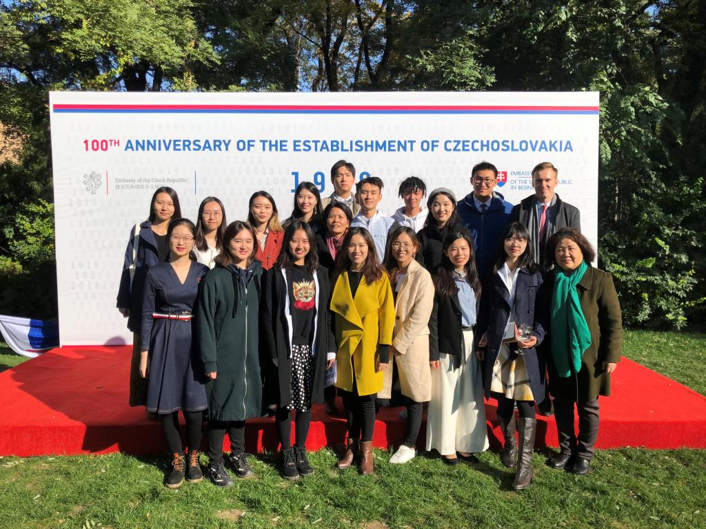 2018年10月26日,365英国上市官网捷克语教研室及斯洛伐克语教研室师生应捷克共和国及斯洛伐克共和国驻华使馆之邀,赴捷克、斯洛伐克驻华大使馆参加两馆联合举办的庆祝原捷克斯洛伐克建国100周年暨国庆招待会。