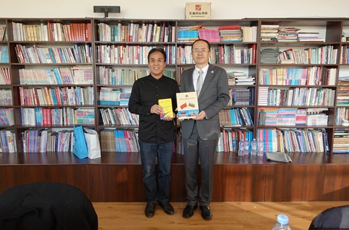 12月9日,代表团一行在索非亚孔子学院中外方院长的陪同下视察了孔子学院教学点“保中教育中心”。贾文键与保中教育中心的师生进行了交流,并询问了在该校工作的索非亚孔子学院志愿者教师的工作生活情况。贾文键向“保中教育中心”赠送了我校汉语国际推广多语种基地资助出版的保加利亚版《汉语小词典》。