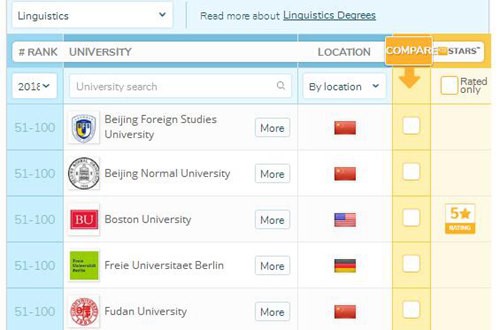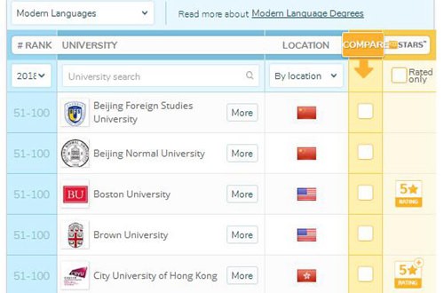 2018QS世界大学学科排名发布,我校语言学、现代语言2个学科进入全球前100