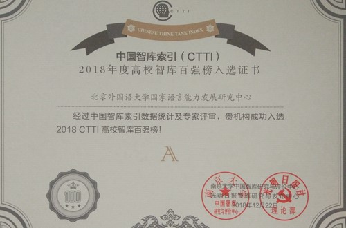 我校国际中国文化研究院、国家语言能力发展研究中心入选2018年“CTTI高校智库百强榜”