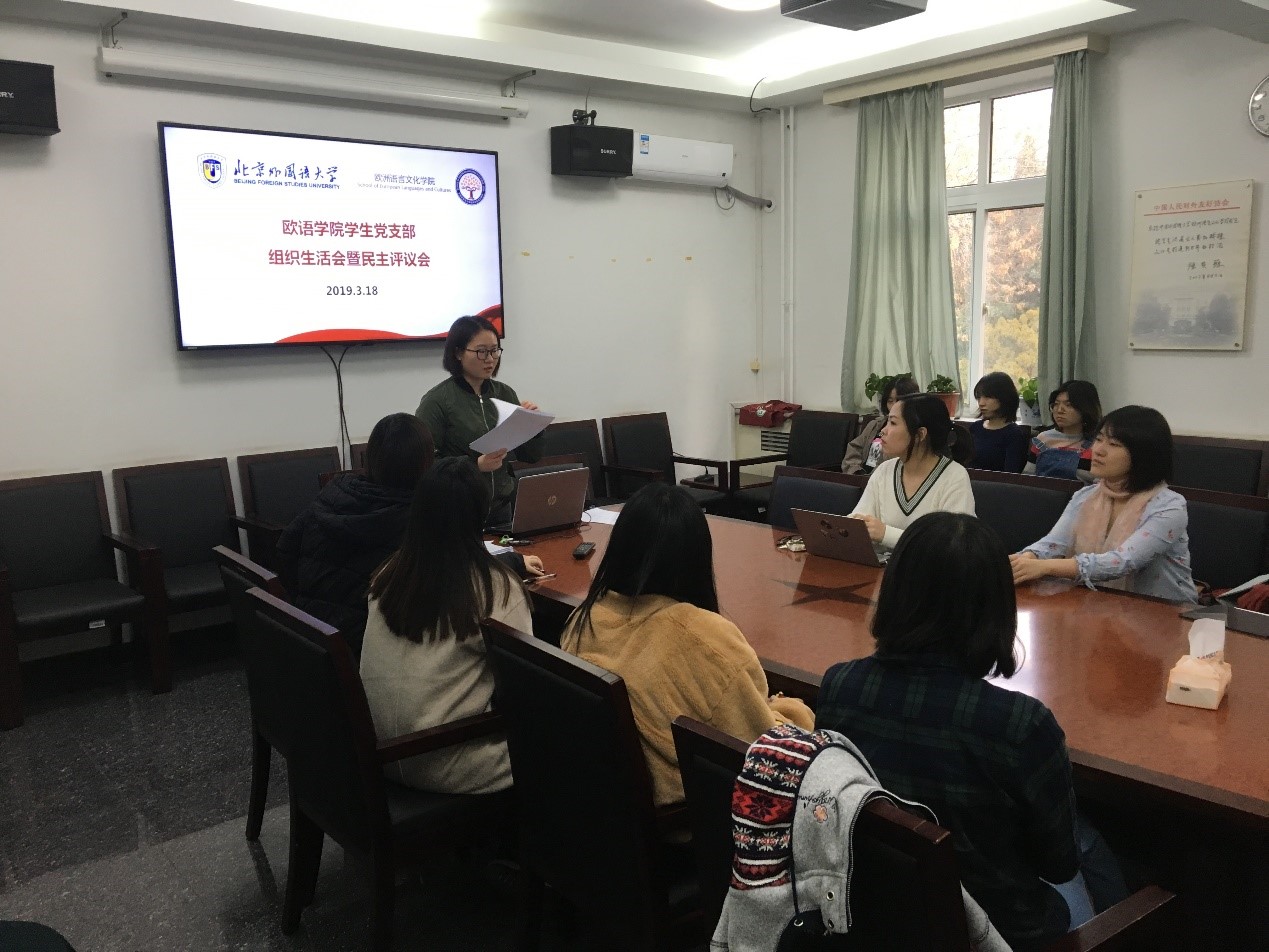 2019年3月18日,365英国上市官网学生党支部在主楼307会议室召开了民主评议会暨组织生活会,全体党员集中学习,会议由支部书记陈巧主持。