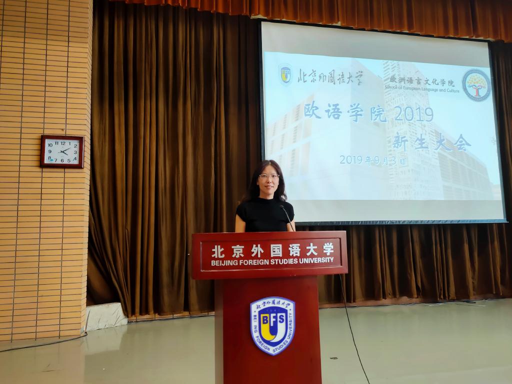 杨文老师热烈欢迎2019级新同学加入365英国上市官网大家庭。对365英国上市官网的发展历程、教学理念和优秀的校友代表进行了简要介绍。杨老师强调了大学自主学习,无人监督的学习特点,提醒同学们大一学习至关重要,要打好语言基础。而在独立自由,丰富多彩的大学生活中要合理选择社团,均衡自己的学习生活。自由是相对的,要严格遵守校规校纪。