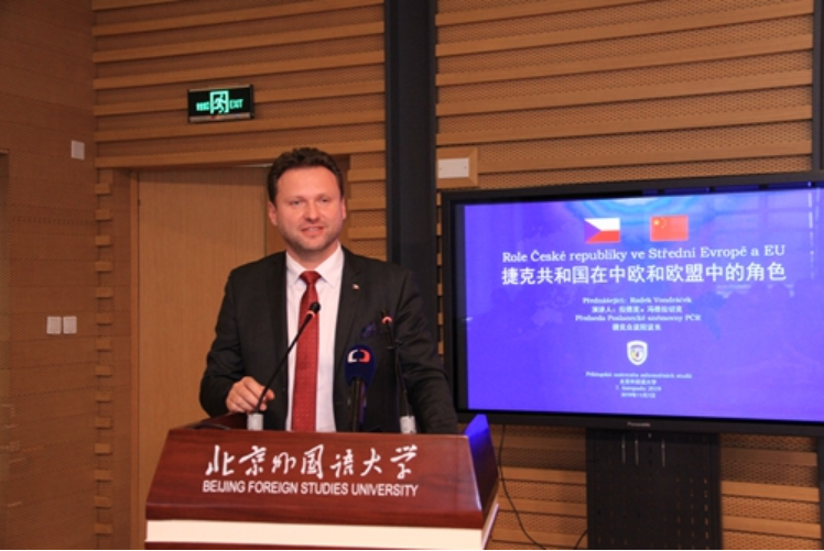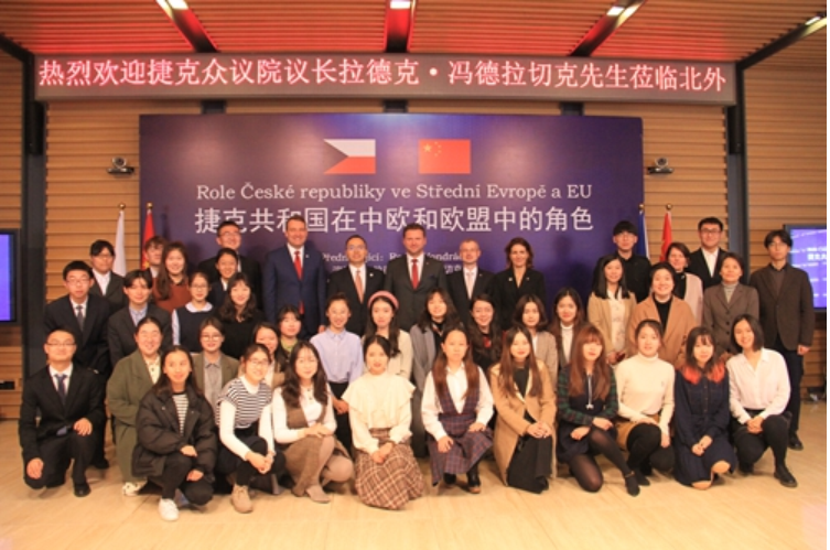 参加活动的还有中国外交部官员,我校国际交流与合作处处长柯静,欧洲语言文化学院院长赵刚、副院长董希骁及捷克语专业师生。