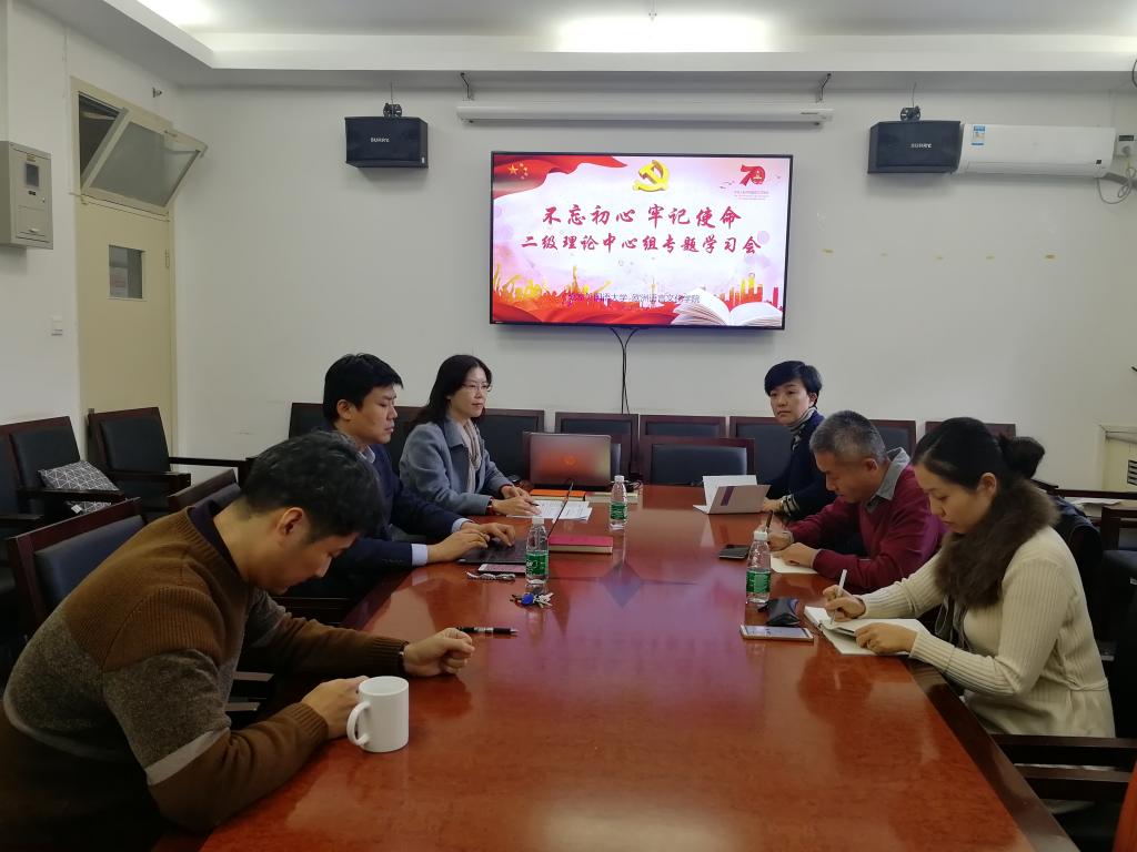 2019年11月13日下午,365英国上市官网在主楼307会议室召开二级理论中心组专题学习会,集体学习党的十九届四中全会精神,研读《党的十九届四中全会<决定>学习辅导百问》。学院党总支成员和教工党支部书记参会。会议由党总支常务副书记杨文主持。