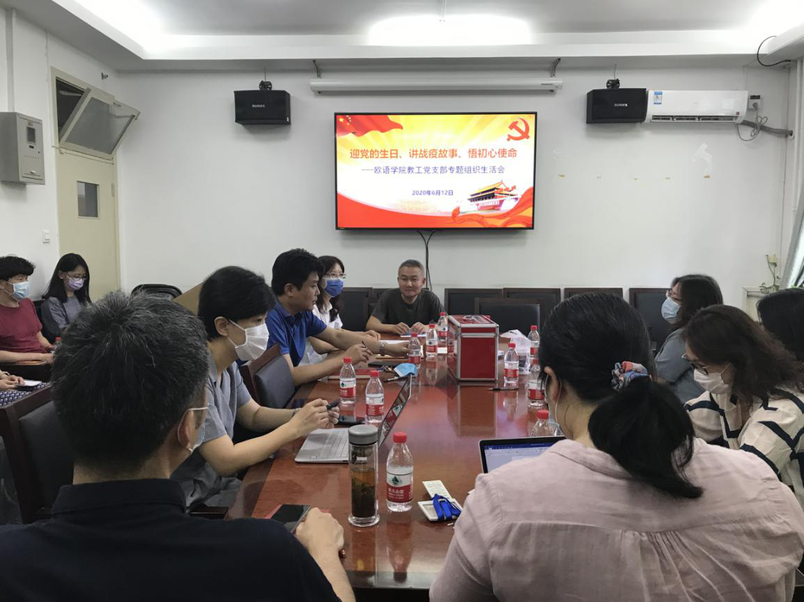 赵刚院长首先发言。他高度肯定了中国疫情防控所取得的巨大成就,肯定了党的领导在疫情阻击战中发挥的重要作用。同时,他提出全球疫情给中国所处的国际环境带来更严峻的挑战,也为非通用语专业的发展和人才培养带来的新的考验,希望各位党员教师要起好模范作用,勇于应对。
