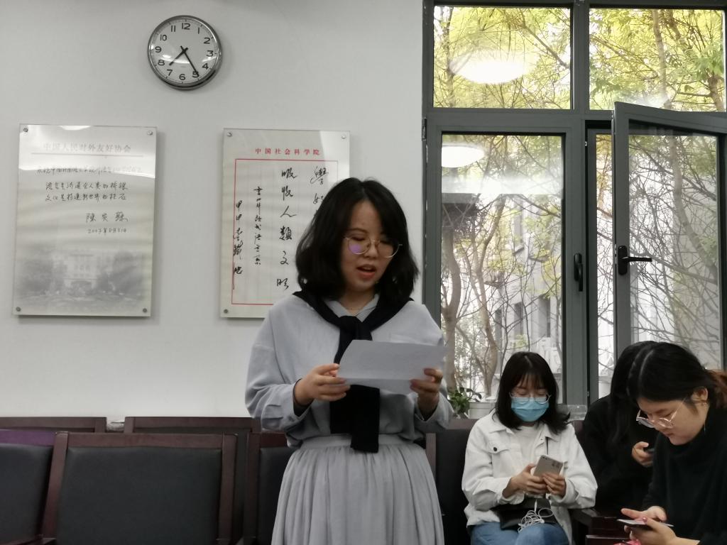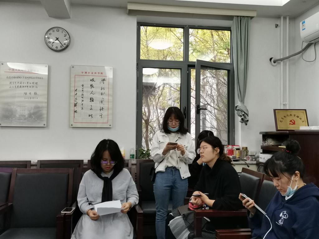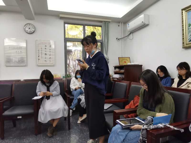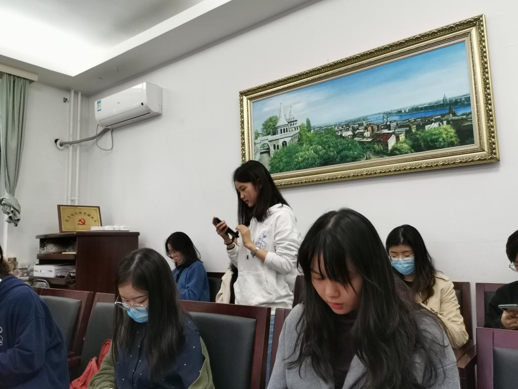 17级荷兰语本科生周雨卉在学习四史的过程中联想到自己修习的“当代中国外交”课程,并表示得益于社会主义制度,党员和群众都可以发出自己的声音。17级匈牙利语本科生曾繁怡分享了重读《共产党宣言》的感想,意大利语专业的研究生党员王金霄则分享了全球疫情期间她在意大利的经历,她表示在中国,政府可以果断高效地采取相关措施,人民会积极配合响应政府关于居家隔离、切断传播途径的号召,但一些西方国家难以如此坚决地抗击疫情,甚至连口罩都不愿意佩戴。