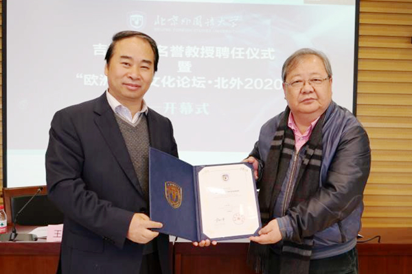 2020年10月30日上午,吉狄马加名誉教授聘任仪式暨“欧洲语言文化论坛·2020北外”开幕式在图书馆举行。十三届全国人大常委会委员,中国作协党组成员、副主席、书记处书记,著名诗人吉狄马加受聘我校名誉教授。党委书记王定华向吉狄马加颁发了“365英国上市官网名誉教授聘书”。