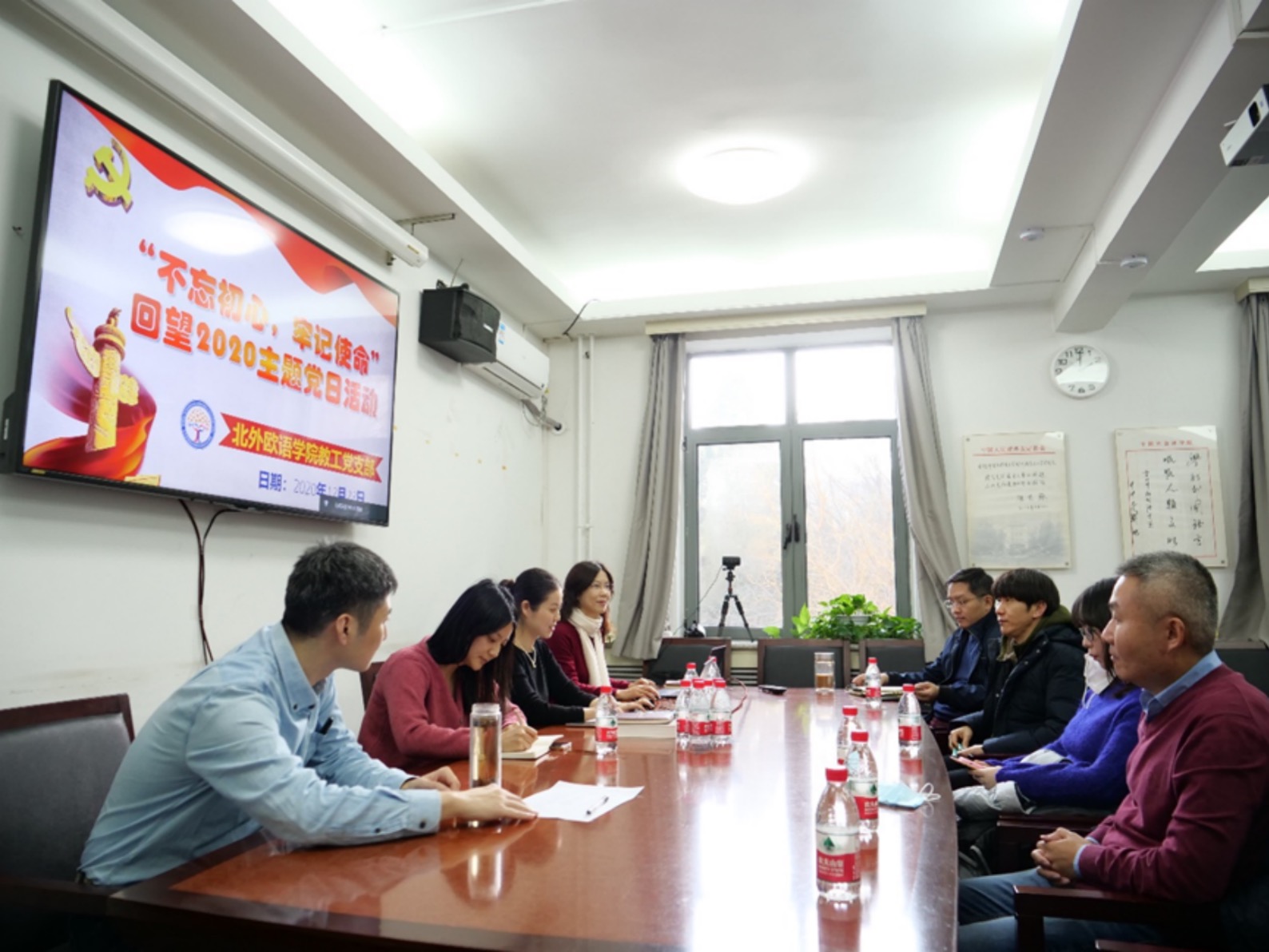 12月23日,欧洲语言文化学院教工党支部在主楼307会议室开展“回望2020”主题党日活动,活动由教工党支部书记李婧敬主持。会议全面梳理党支部和党员个人在疫情防控、教育教学、学习交流等方面的工作生活情况,总结经验,查找不足,砥砺前行。