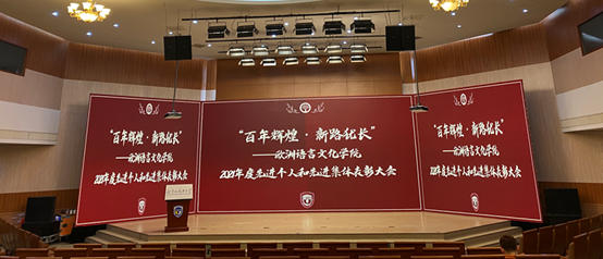 大会伊始,主持人激情澎湃地宣读了欧洲语言文化学院2021年度获奖名单,对获奖的同学进行了表彰,并为他们颁发了奖状。
