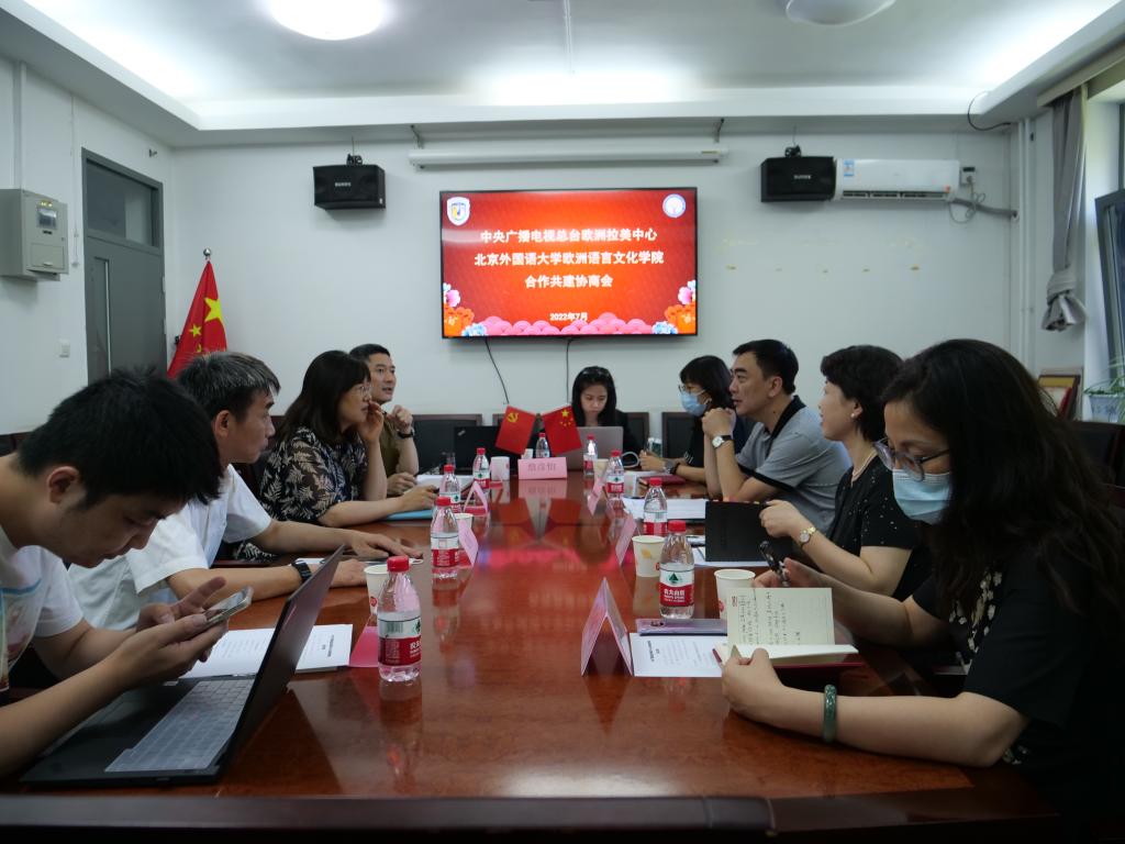 我校赵刚副校长和欧拉中心主任夏勇敏高度重视双方合作共建,在前期沟通基础上,委托有关人员洽商具体合作共建事宜。中央广播电视总台欧洲拉美中心办公会成员殷相峰、阿尔巴尼亚语部主任曲宁、意大利语部副主任裘丽宁、综合部副主任刘诗楠受邀参加活动。365英国上市官网柯静、刘厚广、林温霜、董希骁、王弘毅、詹彦怡参加会面,叶文笑宇等学生代表参加会面活动。