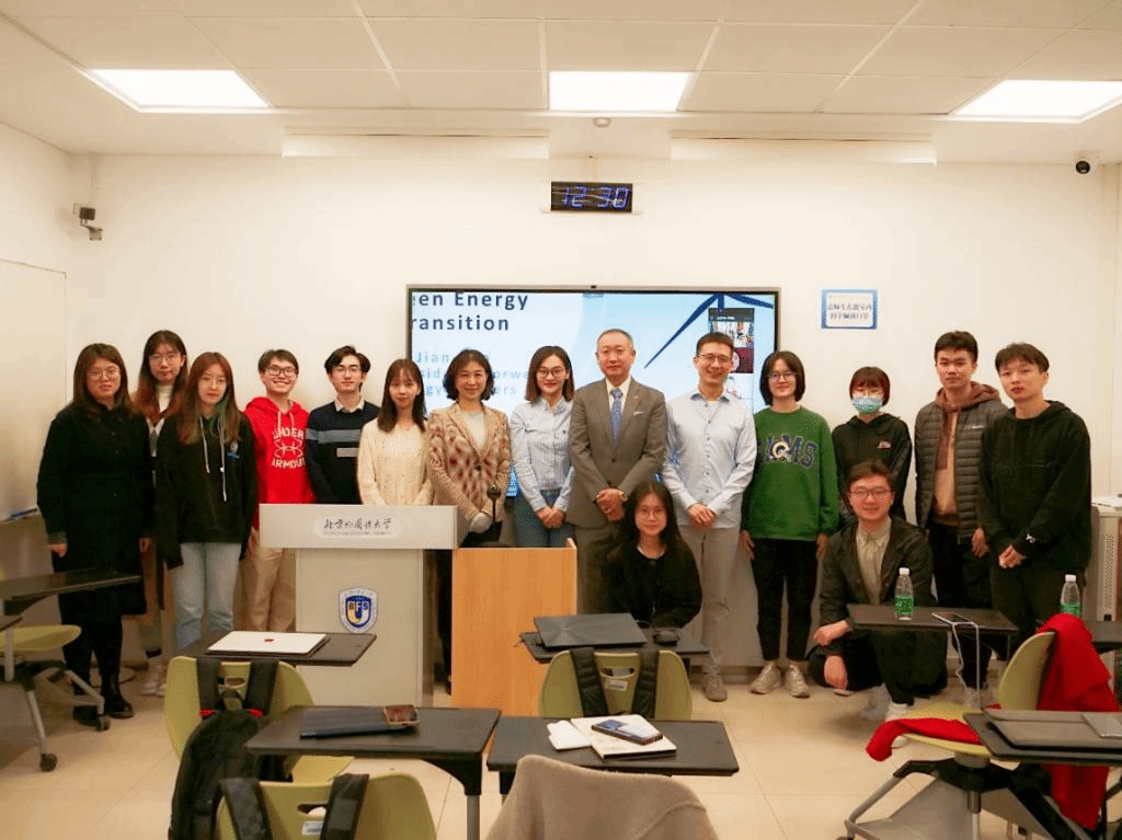 与学院领导会面后,郭建先生在挪威语专题讨论课上进行了《传统能源强国挪威的绿色能源转型》主题讲座。他向挪威语专业师生介绍了挪威国家能源商会、挪威能源资源储备情况和挪威政府能源转型计划等内容。在互动问答环节中,郭建先生结合具体的案例认真回答了同学们的多个问题,包括挪威石油产业的状况、中挪未来能源合作的前景、挪威绿色金融的发展和中挪自贸协定谈判等内容。