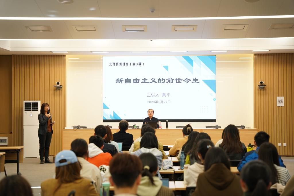 3月27日下午,中国社会科学院大学特聘教授、香港中国学术研究院常务副院长、第十四届全国政协委员黄平,应欧洲语言文化学院邀请,以“新自由主义的前世今生”为题,为“北外大讲堂”之“欧洲讲堂”带来了一场精彩的学术讲座。