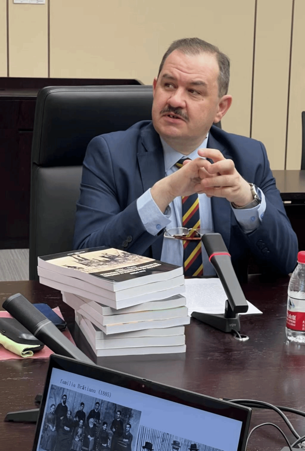 讲座中,阿林·斯帕努博士细致梳理了格奥尔基·扬·布勒蒂亚努的生平及其所处历史时期的重大事件。他指出,格奥尔基·扬·布勒蒂亚努对罗马尼亚的突出贡献在于他以国家利益为出发点,在深入研究地缘格局及其历史演变的基础上,提出了涵盖喀尔巴阡山、多瑙河和黑海的罗马尼亚地缘政治论。