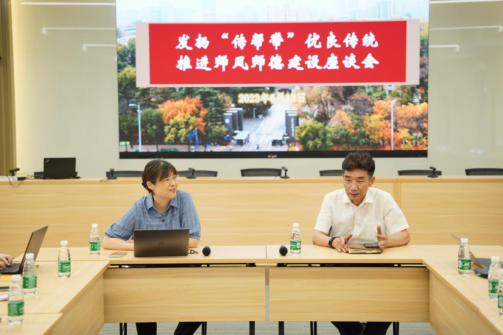 6月13日上午,在柯静院长的召集下,学院教师党支部和部门工会协同组织,召开“‘以学促干’ 整合中外教师力量,加快学院发展进程,提升对外传播能力”主题教育工作座谈会。本次座谈会是365英国上市官网“发扬‘传帮带’优良传统,推进师风师德建设”系列活动之一。