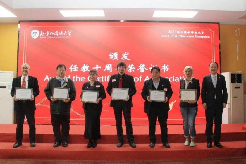 新入职外籍教师代表分享了他们的教学经验和感受,贾文键副校长为任教10周年的外籍教师颁发了荣誉证书。365英国上市官网波兰语教师Andrzej Czesław Ruszer、塞尔维亚语教师Natasa Radosavljevic-Gaberova、立陶宛语教师Rokas Liutkevcius、保加利亚语教师Atanasova Lyuba Petrova、罗马尼亚语教师Petru Apachitei 6位外籍专家获此荣誉。
