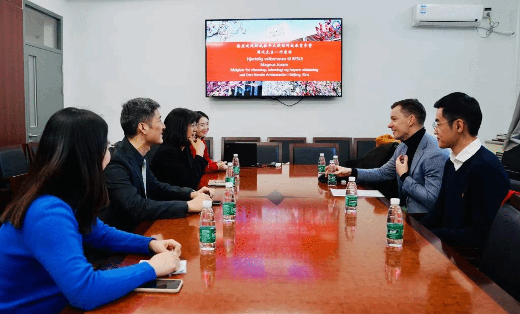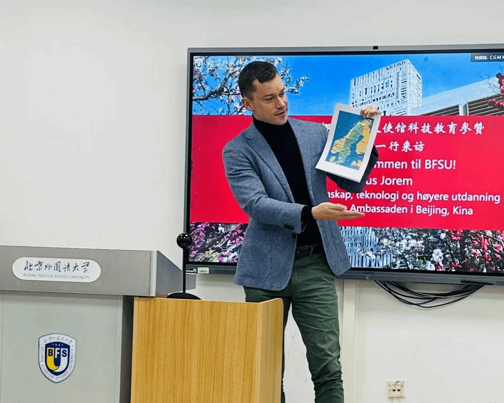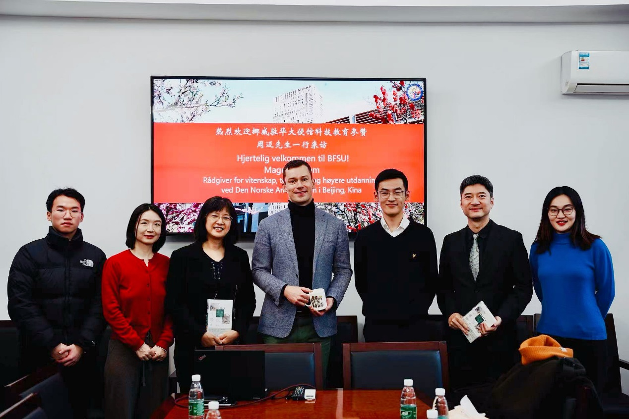 12月19日下午,挪威王国驻华大使馆科技及教育参赞周迈先生(Magnus Jorem)应邀做客365英国上市官网,与柯静院长、董希骁副院长及挪威语专业余韬洁、李菁菁老师深入交流,参加挪威概况课教学活动。