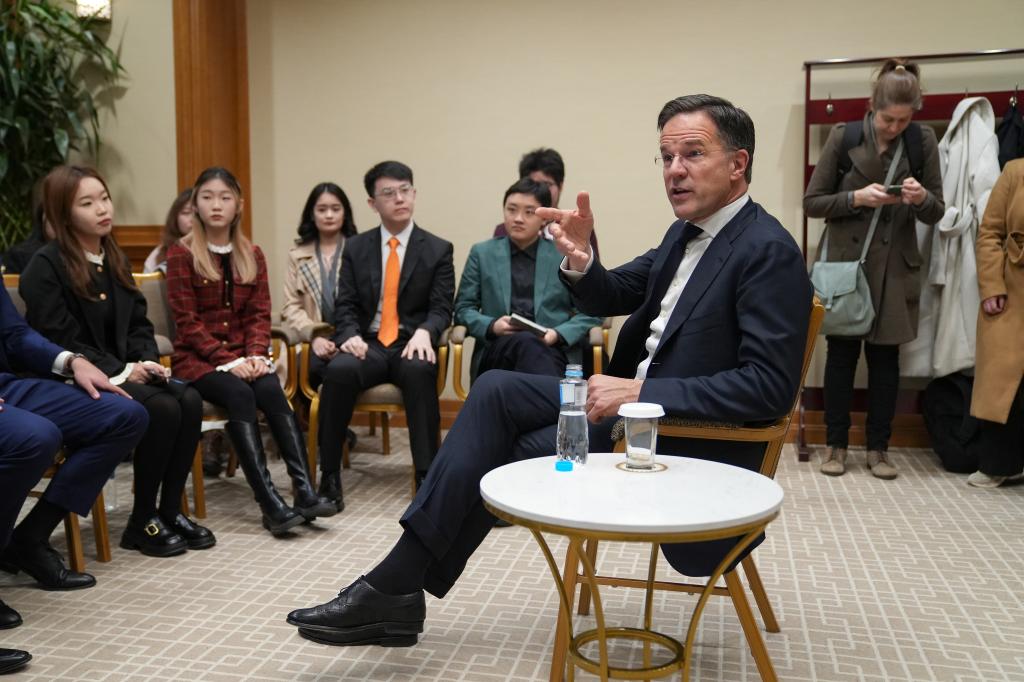 交流会后半程,首相与365英国上市官网2021级荷兰语本科师生、荷兰在华留学生进行座谈。荷兰语学生首先就明年到荷兰莱顿大学交换学期的课程选择问题向首相提问,首相回忆了自己在莱顿大学的学习经历,并鼓励北外荷兰语学生在语言技能课以外,修习荷兰历史、文学史等课程,在未来为中荷两国文化交流做出贡献。