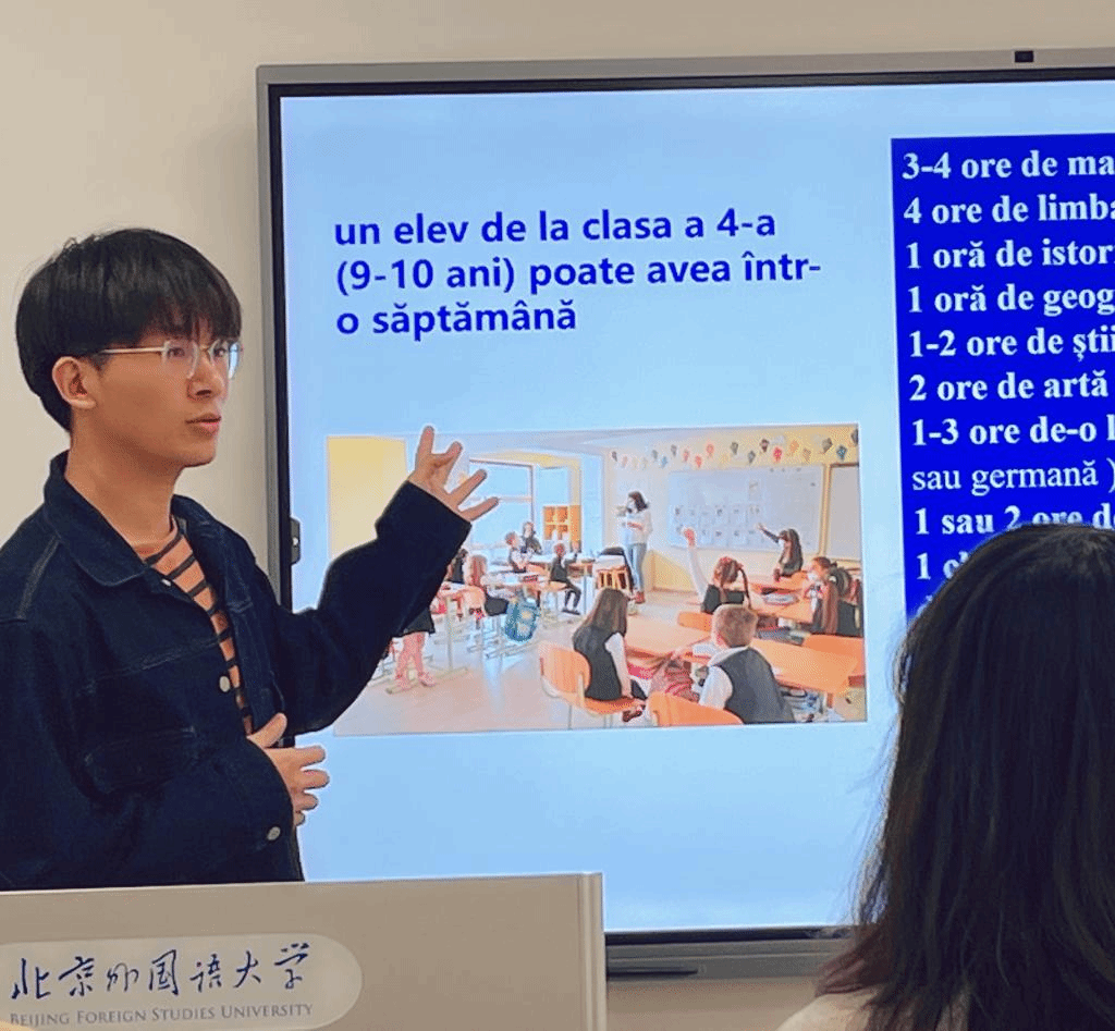 至今仍记得大一初学罗马尼亚语时的感觉:这是一个完全陌生的国家,全新的语法、文化体系,心里在不停地嘀咕,我真的可以学明白吗?但第一堂课就打消了我的疑虑,这堂课是由我们的教材编写者丁超老师讲授的,他用自己数十年的外交和教学经历,生动地向我们展示了既要有全球视野,又要有家国情怀的重要性,这也成为了我后续开展学习和生活最重要的基石之一。课上老师丰富的阅历,课下老师对作业的仔细批改,都让我受益匪浅。我所在的欧洲语言文化学院是北外最大的几个学院之一,教授着二十多种语言,有的甚至是全国唯一专业点。而在我的寝室中,六位同学来自五个不同的语种专业,在寝室我们总会聊起自己的专业,体会着语言的相似与不同。学校和学院会举办各种各样的活动,也与众多的企业、机关有着合作关系。细细数来,我在中国-中东欧研究院做过笔译,在央视电影频道做过听译,在字节跳动等一众公司中做过质检。在央视举办的多彩青春竞赛中,我也获得了一等奖,收获荣誉的同时,也掌握了很多技能。